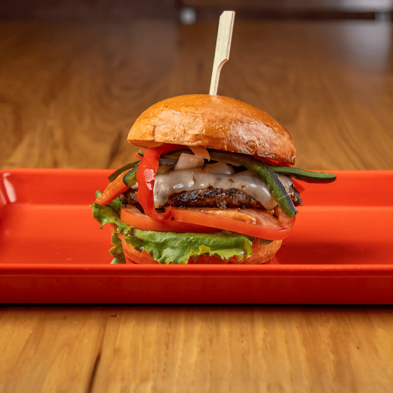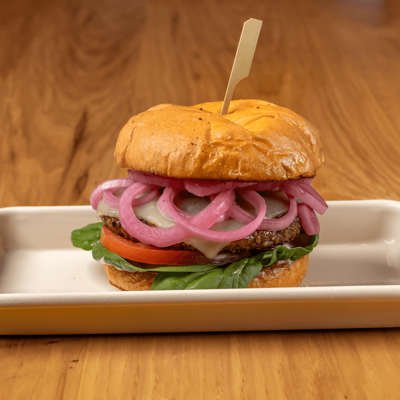 black bean and brown rice patty, pepper jack, spinach, tomato, pickled red onion, house mayo