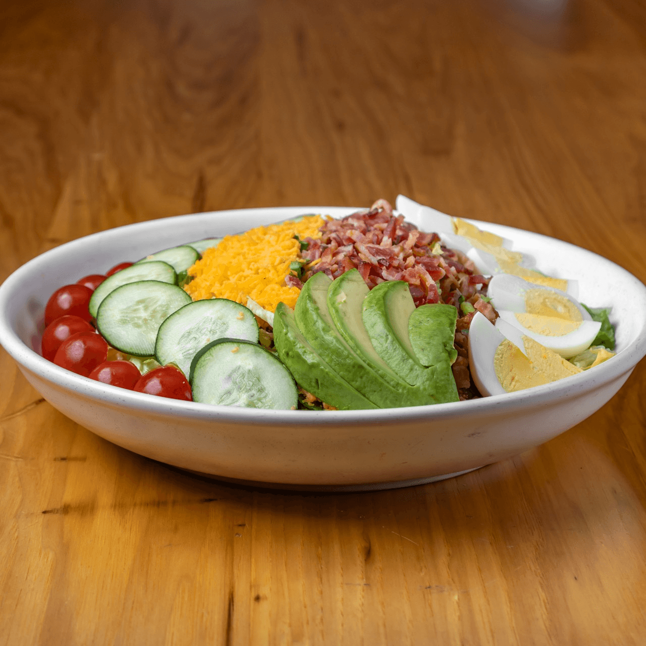romaine, avocado, cherry tomato, cucumber, egg, bacon, cheddar, choice of dressing