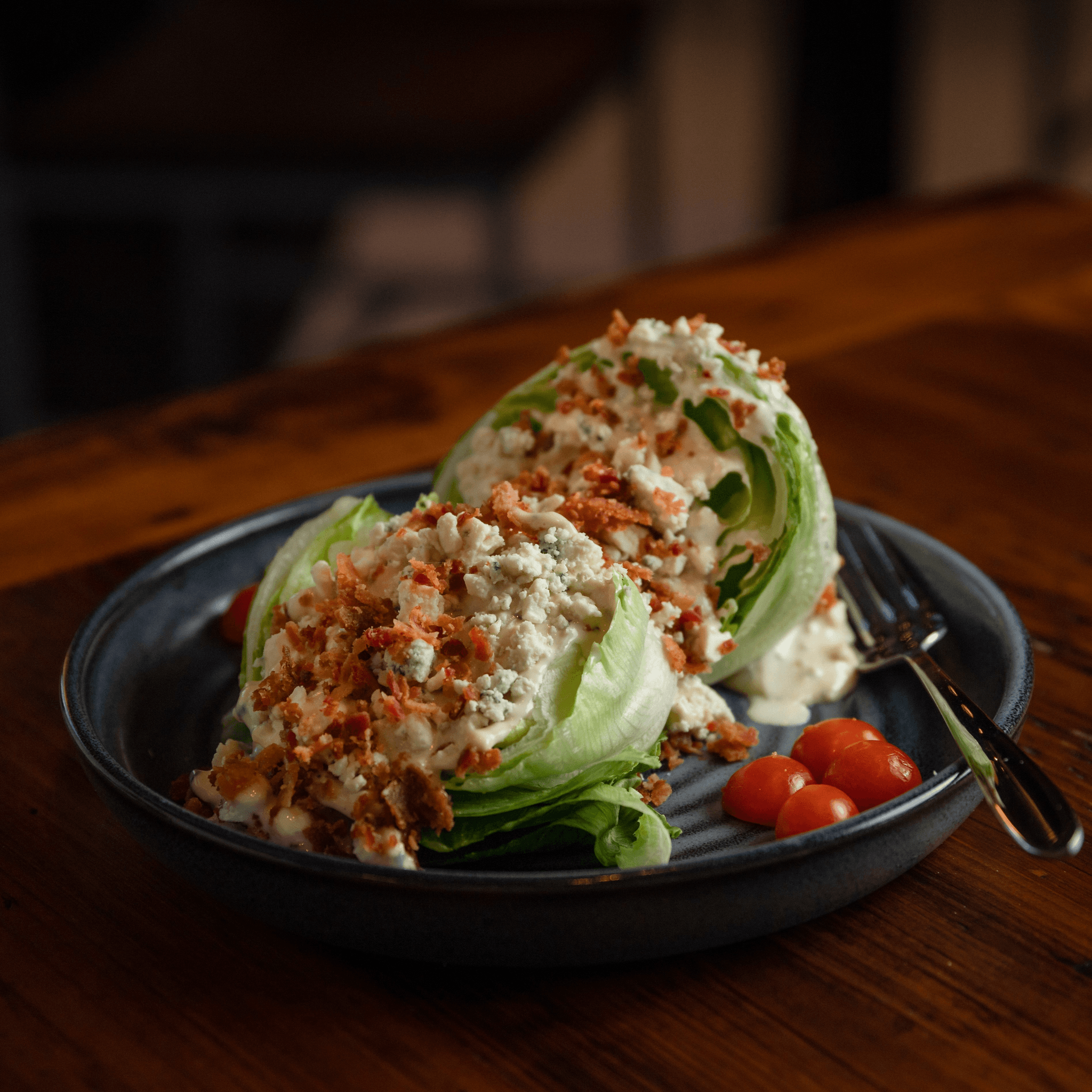 baby iceberg, bacon, tomato, bleu cheese dressing